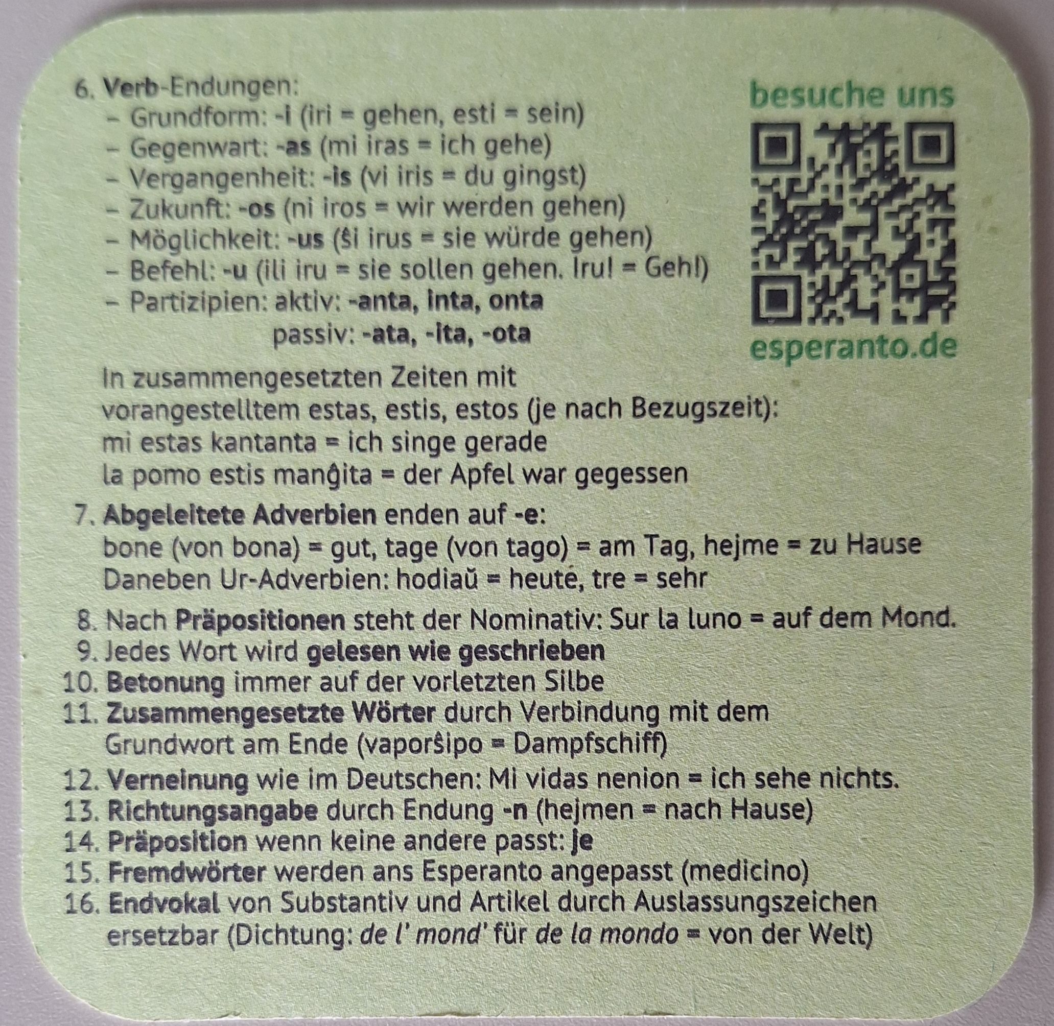 Wer Interesse hat, Esperanto-Bierdeckel zu erhalten und gegebenenfalls zu verteilen, kann mich am 21.06.2025 bei der Nacht des Wissens darauf ansprechen. Am Nordcampus gibt es in der Goldschmidtstraße (Fakultät für Geowissenschaften und Geographie) drei Quiz-Veranstaltungen, die ich moderiere: