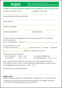 Deutscher Esperanto-Kongress – Anmeldeformular