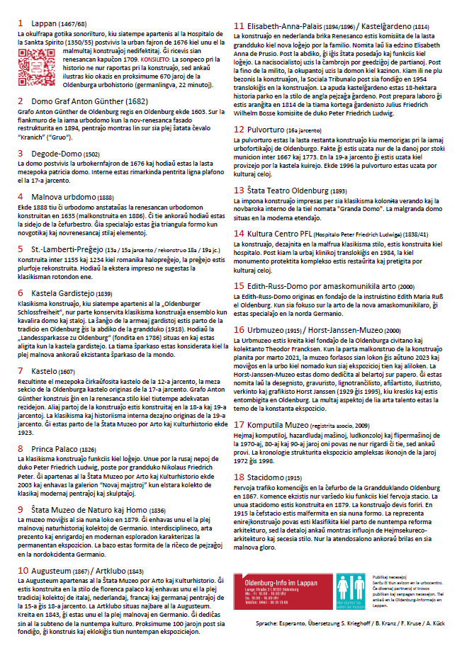 Oldenburg – Innenstadtplan S. 2 (Erläuterungen in Esperanto)