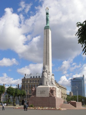 La Monumenton konstruis skulptisto Kārlis Zāle kaj arĥitekto Ernests Štālbergs dum 1931-1935. Por tiu ĉi monumento la tuta popolo kolektis la monon. Sur la monumento oni skribis la vortojn “Por Patrujo kaj Libereco”.