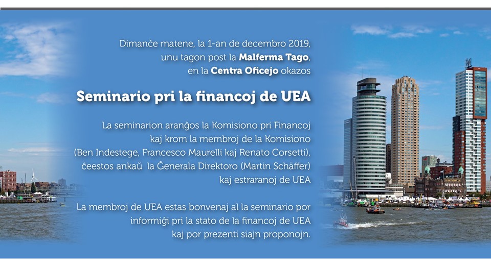 01.12.2019:     09.00-12.00 Roterdamo:     Seminario pri la financoj de UEA