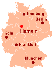 Hameleno (Hameln) situas ĉ. 50 km sudokcidente de Hanovro (Hannover), la landa ĉefurbo de la federacia lando Malsupra Saksio, en la norda parto de Germanio.